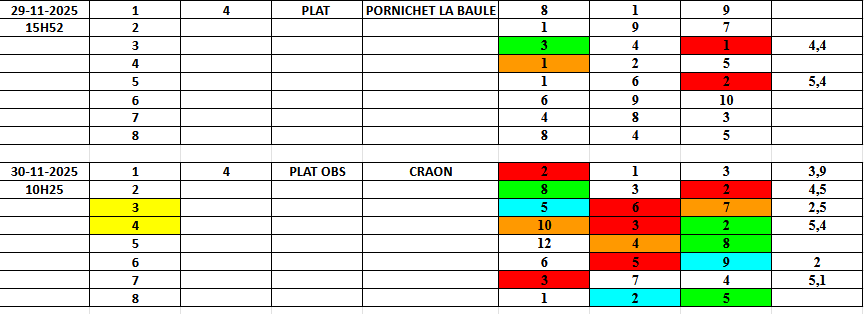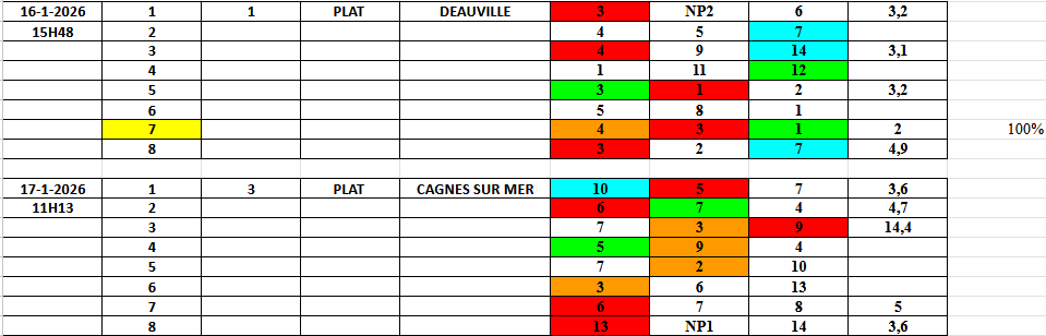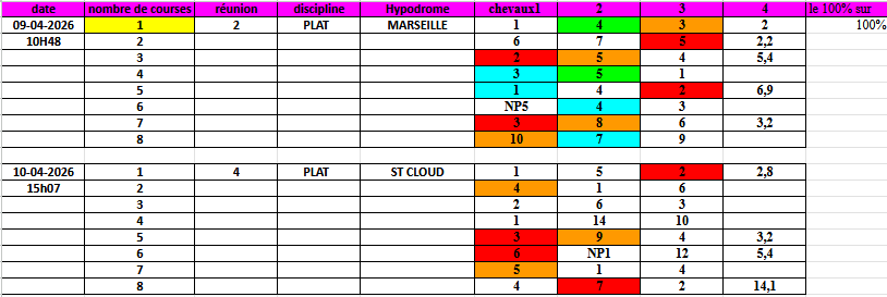 Explications du tableau de gestion ci-dessus d’une journée de courses: