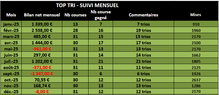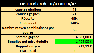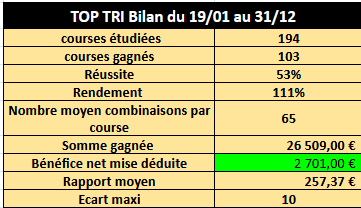 Voici un exemple d’une course gagnée avec TOP TRI V2: