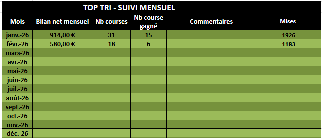 Dans la course du tiercé-quarté-quinté, nous jouons le TRIO, soit une course par jour, toutes disciplines confondues.